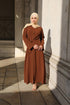 Whether you’re moving through a busy day or embracing a minimalist, polished look, the Salma Abaya offers versatility for every moment. The button-down front, extending gracefully from neckline to hem, adds a touch of classic sophistication, while the wide yet tailored elbow hems ensure both style and ease of movement.
