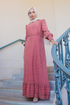 Our new and improved Evelyn embossed dress takes our Eva Maxi dress up a notch! Dramatic polka dots embossed on a lovely chiffon/polyester material, create this super soft and elegant polka dress. This dress comes with stretchy banded cuffed sleeves, ruffled shoulder edges and a round neck collar. It is enhanced at the bottom by a slight small ruffled hem that give us the most best Old English vibes.  The Evelelyn comes in two stunning shades Burnt Sienna and Dark Mauve.