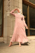 Our absolute favorite from our new collection the Melanie Maxi Dress offers a unique embossed floral print, this dress comes with three layers of a chiffon-polyester blend that accent the skirt for a flowy look under a cinched stretch bodice. A rounded boat collar and ballooned cuffed sleeves, a Niswa staple, complete this dress.