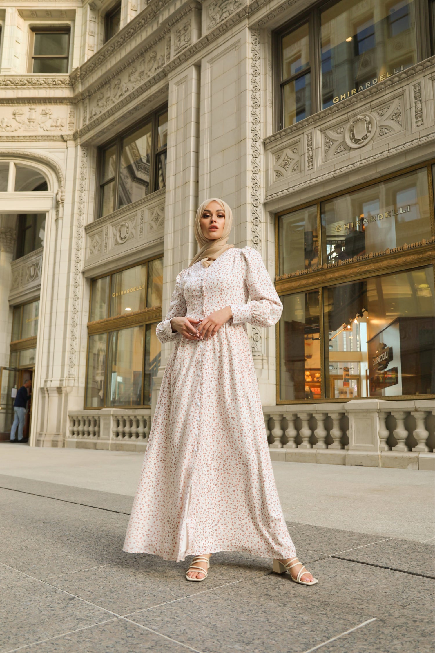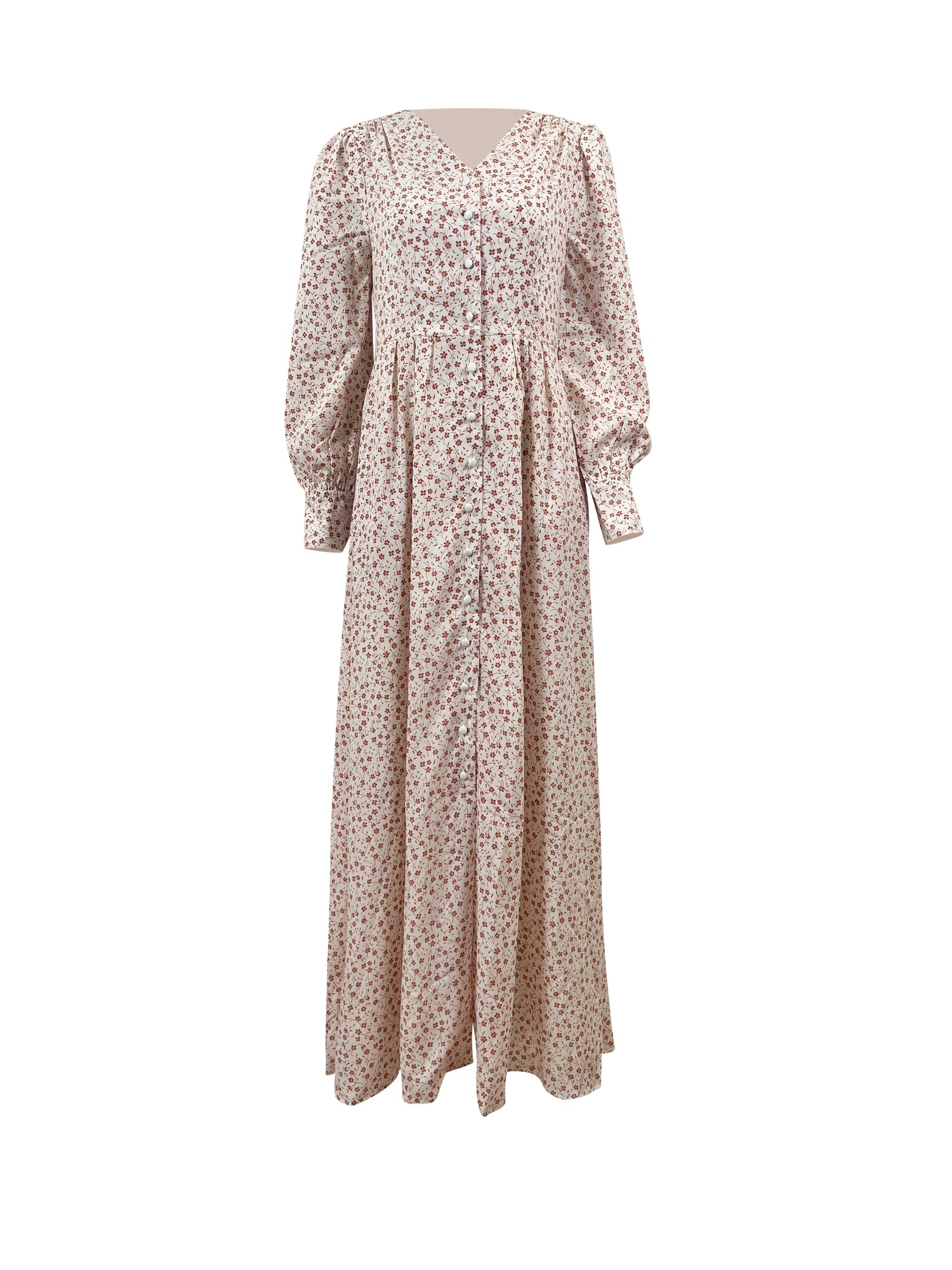 With all the drama and glamour of your universal dreams, this Romesa Button-Down maxi dress flatters with a delicate flower print and cinched balloon sleeves. The cinched waist adds a more tailored look yet keeps it modesty in tact.