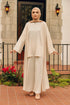 Elevate your wardrobe with our three-piece abaya set, including an outer abaya, a full-sleeve top, and straight loose pants, all in a captivating color.