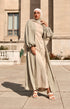 This elegant full-length wrap abaya exudes elegance. Made of a supple satin and rayon blend, this abaya is soft to the touch and super comfortable. Cinched balloon sleeves add fun pizazz to this outfit. With an elegant scalloped collar, this formal abaya is perfect for any occasion. The fabric moves effortlessly with your every move! This piece comes in three shades.