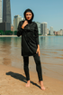 Indulge in the allure of Niswa Fashion's Yasmin Swim Set. Set the stage for unforgettable beach or pool moments. Featuring a cinched waistline for easy adjustment, cuffed sleeves, and a contrasting black border hem this set is perfectly comfortable and casual. Not only does this swimwear set embody modesty, but it also boasts exceptional quality and comfort. The fabric is carefully chosen to provide the perfect blend of flexibility and support, allowing you to move freely and confidently. With its quick-drying properties, you can transition effortlessly from the water to the shore without any discomfort.