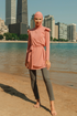 Say hello to Nida. This exquisite set combines timeless elegance with contemporary trends, ensuring you make a statement while feeling comfortable and covered.  A zip down collar, removable belt and cute shoulder detailing adds pizazz to your swimwear needs. This set is not just a swimwear ensemble; it's a reflection of your personal style and values. Whether you're looking for a stylish option that aligns with your beliefs or simply appreciate the elegance and versatility it offers, this set is a must-have addition to your wardrobe.